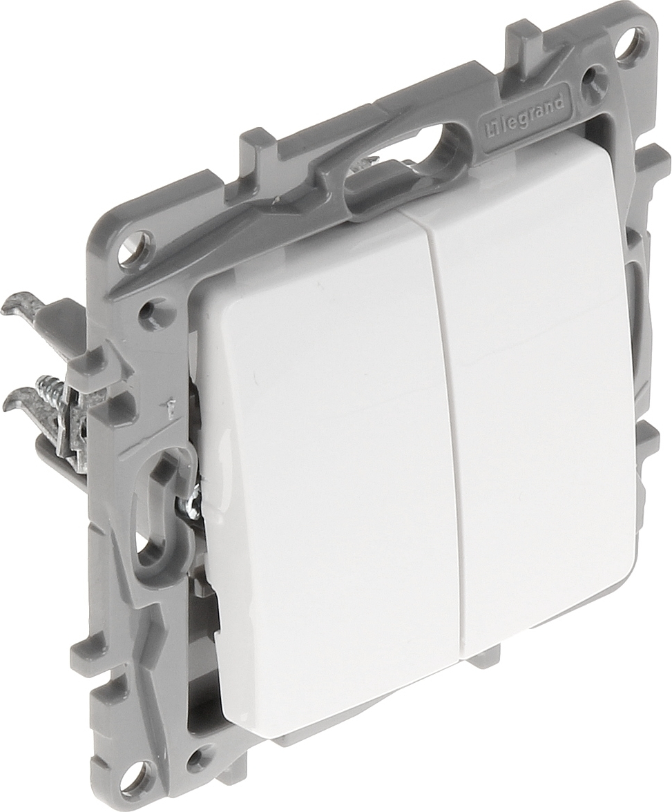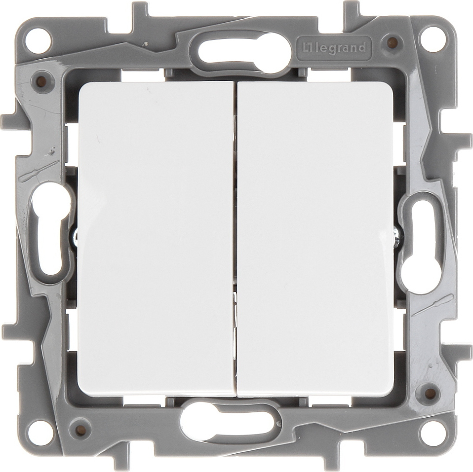 Διακόπτης χωρίς πλαίσιο, σε λευκό χρώμα, ο οποίος μπορεί να τοποθετηθεί με βίδες ή νύχια. Παράλληλα, είναι συμβατός με τα πλαίσια διακοπτών Niloe. Το μήκος και πλάτος του είναι 76mm, ενώ το συνολικό του βάθος είναι 45.5mm.