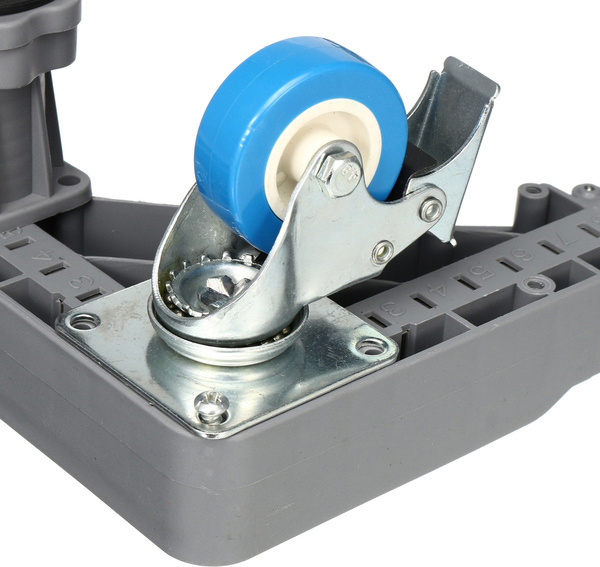 Διαθέτει 4 τροχούς με φρένα ακινητοποίησης, 4 ποδαράκια ρυθμιζόμενου ύψους και αλφάδι για την διευκόλυνση της τοποθέτησης των αντικειμένων.